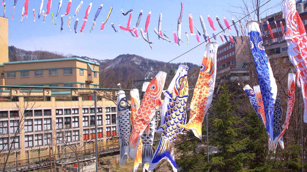 この時期、4月の中旬位からの定山渓温泉では「定山渓温泉 渓流鯉のぼり」が開催されていて、温泉街を流れる豊平川の上に400もの鯉のぼりが空を舞います。札幌の奥座敷とも言われる人気の温泉街、このイベントは春の風物詩として昭和62年から開催されています。道民から寄贈された、たくさんの鯉のぼりが空を泳ぐ景色は圧巻!この季節の観光にはドライブがてら定山渓にも足を運んでみてはいかがでしょうか?日帰り温泉もある他、温泉街に複数箇所ある公園や広場の足湯は、無料で楽しむこともできます。