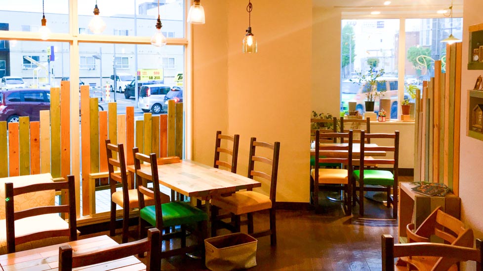 店舗の内装のカラフルなパネルからイスやテーブルまで、そのほとんどが手作り。DIYによって店内全体も落ち着いた空間になっているので、お店に入ったらぜひ注目してみて。