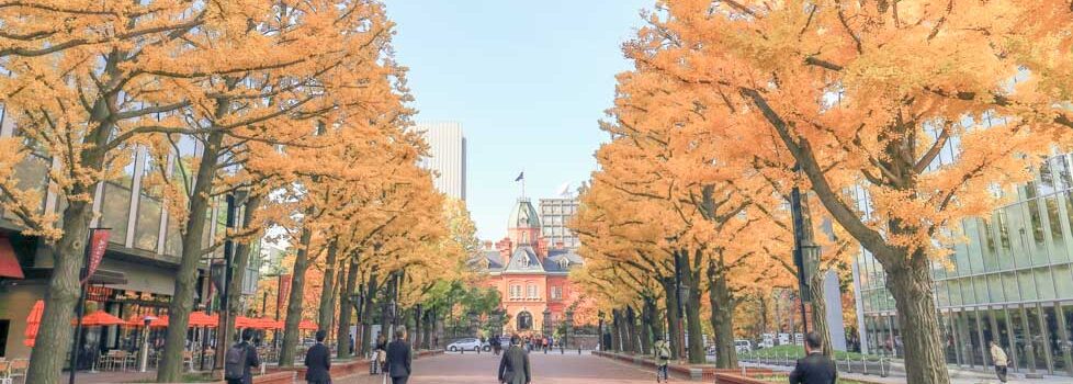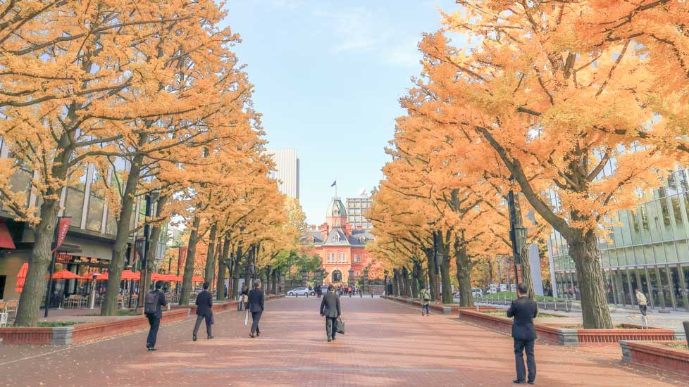 北3条広場「アカプラ」の両脇に美しいイチョウ並木があります。