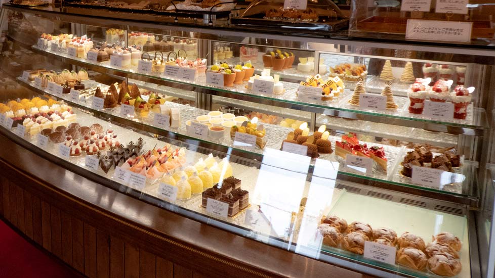 ショーケースには美味しそうなケーキがたくさん。いつものご褒美に。大切な日にも。