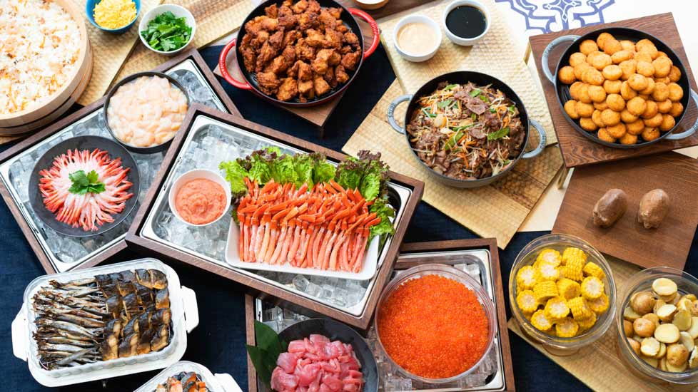 メインは蟹、北海道産イクラ、甘海老、マグロ、ホタテなど贅沢な海の幸を自分好みで作る海鮮丼。